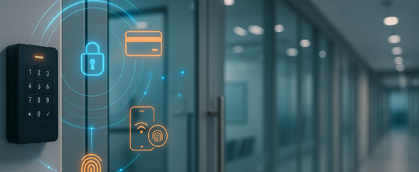 Cards, fobs, mobile credentials, and biometric readers are all supported.